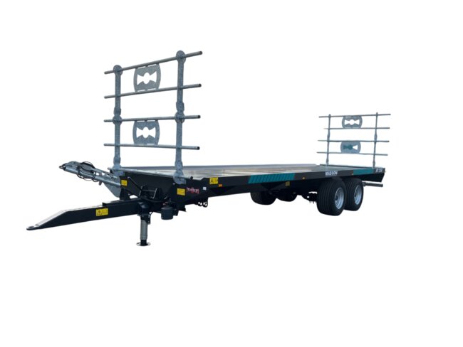 Plateau semi-porté double essieux 8 mètres. Disponible avec freinage hydraulique double ligne 25 km/h, ou freinage pneumatique double ligne 40 km/h.
